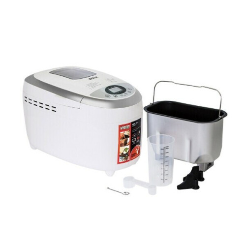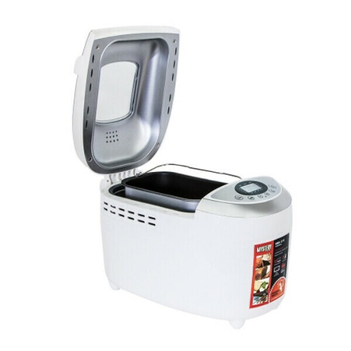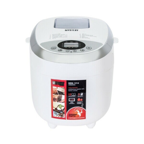 MYSTERY MBM-1214 мощностью 700 Вт может похвастаться весом выпекаемого хлеба до 1250 г. С хлебопечкой MYSTERY приготовление хлеба не требует никаких усилий, достаточно просто поместить в нее ингредиенты и выбрать необходимую программу выпечки, все остальное печь сделает сама. Особенностью хлебопечей MYSTERY является наличие специального таймера, который позволяет отложить начало приготовления. Это означает, что, засыпав ингредиенты с вечера и установив отсрочку по таймеру, можно получить к утреннему завтраку прекрасный душистый свежий хлеб. Для изготовления хлеба подойдет тесто из любых видов муки – пшеничной, ячменной, кукурузной и других. Добавки также могут быть любые: семена кунжута, орехи, курага, чернослив, сыр. Хлебопечь, позволяет получить хлеб разной степени «румяности» - с корочкой 3 видов, от светлой до темной. Процесс приготовления хлеба осуществляется за счет постоянного перемешивания теста и равномерного нагрева камеры. Причем такая технология подходит не только для хлеба.
