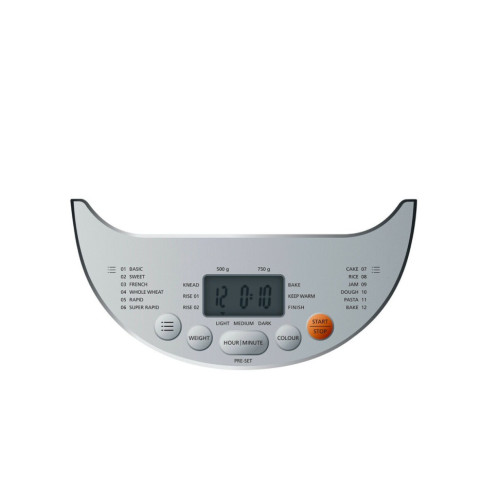 Хлебопечка для выпечки вкусного домашнего хлеба, пирожных, приготовления джема и многого другого. 12 автоматических программ. Выбор веса буханки (500, 750 г). Выбор степени подрумянивания корочки (светлый, средний, темный). Съемный чаша с антипригарным покрытием. Сенсорное управление с большим дисплеем. Таймер до 13 часов. Крышка со смотровым окном. Автоматическое поддержание тепла до 1 часа. В комплекте мерный стаканчик, мерная ложка, рецепты.