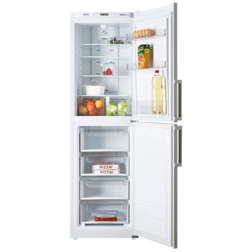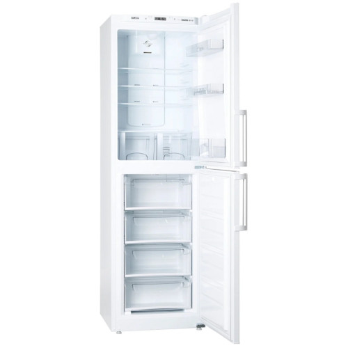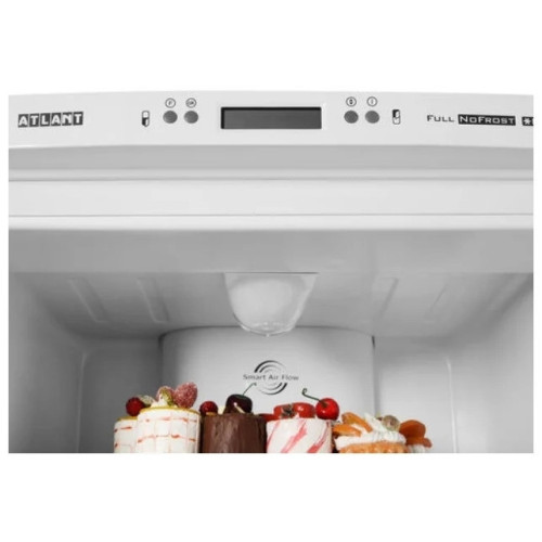 Однокомпрессорные холодильники ATLANT COMFORT+ оснащены автоматической системой оттаивания Full No Frost, которая дает возможность забыть о размораживании холодильника, достаточно провести уборку отделений один раз в год. Такая система основана на принудительной, с помощью вентилятора, циркуляции воздуха, который из морозильного отделения поступает в холодильное отделение и охлаждает его. Особенности и дизайн Два сосуда Вместительные сосуды из прозрачного пластика для овощей или фруктов Система управления Электронный блок управления позволяет устанавливать температуру в отделениях, отключать холодильное отделение или холодильник, обеспечивает световую индикацию на дисплее, управляет работой вентилятора Емкость нижняя Емкость на всю ширину двери Smart Air Flow Система многопоточной циркуляции холодного воздуха Smart Air Flow обеспечивает быстрое и равномерное охлаждение продуктов, которые хранятся в холодильнике долго Полки-стекло Полки из ударопрочного стекла выдерживают нагрузку до 25 кг, красивы и удобны во время использования Емкости средние с вкладышем для яиц Вкладыш для десятка яиц можно устанавливать как в емкость на двери, так и на полку отделения Выдвижные пластмассовые корзины Корзины, наполненные продуктами, легко перемещать вне морозильника, так как на их боковых поверхностях предусмотрены ручки LED освещение Потолочный плафон освещения улучшает освещенность холодильной камеры, занимая минимум места Ручка-скоба Лаконичный облик холодильников подчеркивает форма вертикальных ручек-скоб с удобным захватом для легкого открывания дверей. Эти ручки переустанавливаются при перенавеске дверей на правостороннее открывание Масленка Емкость для хранения сливочного масла