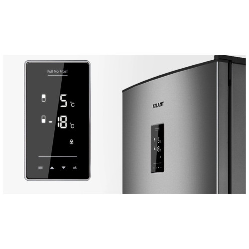 Двухкамерный холодильник с дисплеем, электронное управление, FULL NO FROST, класс A. Благодаря системе «Full NO FROST» холодный воздух принудительно, с помощью вентилятора, поступает из морозильного в холодильное отделение и охлаждает его.