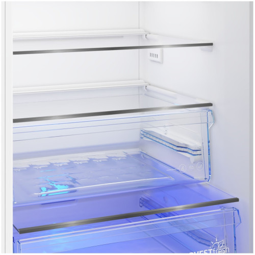 Двухкамерный холодильник высотой 2 метра имеет общий полезный объем 357 л, двухконтурную систему охлаждения No Frost Dual Cooling (Ноу Фрост), энергосберегающие режимы «Отпуск» и Eco Mode. Ящик для фруктов и овощей в холодильнике оснащен технологией 3-х цветов HarvestFresh, которая увеличивает срок хранения свежих фруктов и овощей и поддерживает в них концентрацию витаминов и микроэлементов. Специальный отсек с температурой 0-3 ?C предназначен для хранения мяса, рыбы и молочных продуктов, дольше сохраняя их свежими. А функция суперзаморозки Quick Freeze в морозильном отделении позволяет быстро заморозить большой объем свежих продуктов.
