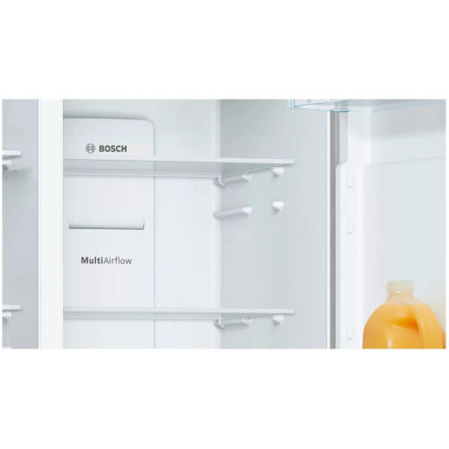 Холодильник с морозильной камерой NoFrost c управлением на дверце: избавляет от разморозки - охлаждает максимально эффективно. Нет необходимости размораживать морозильную камеру благодаря системе NoFrost. Multi Airflow. Равномерная циркуляция воздуха в холодильнике. Светодиодная подсветка LED ярко и равномерно освещает пространство холодильника. MultiBox: прозрачный ящик с волнистым дном, идеально подходит для хранения фруктов и овощей. Функция SuperCooling: охлаждает только что помещенные продукты быстрее, в то же время защищая уже замороженные.