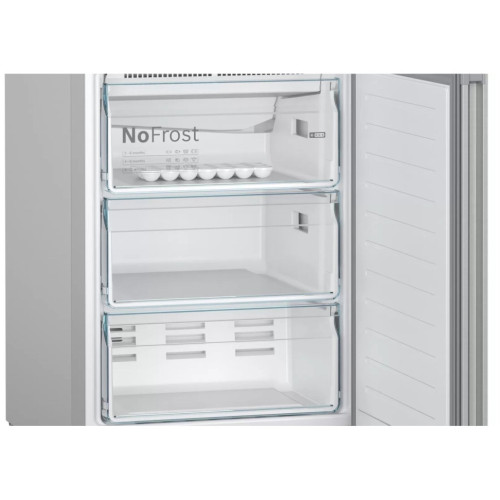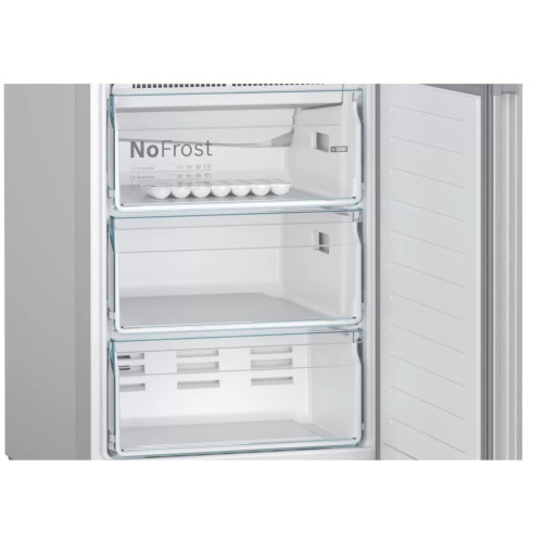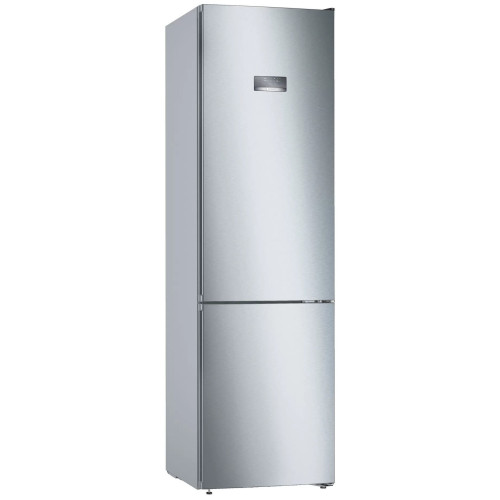 Двухкамерный холодильник Bosch KGN39V 25RSerie 4 с инверторным двигателем и двумя контурами охлаждения позволяет точно выставлять температуру в морозильном и холодильном отделениях вне зависимости друг от друга. Датчики FreshSense контролируют и поддерживают нужную температуру в обоих отделениях, чтобы максимально продлить срок хранения продуктов. Холодильник KGN39VI25R легко впишется в интерьер кухни. Установите его вплотную к стенам и мебели — никаких зазоров сзади и по бокам. Дверца открывается на 90°, позволяя легко выдвигать полки и ящики. НЕ ТРЕБУЕТ РАЗМОРОЗКИ Благодаря системе NoFrost в морозилке не образуется иней и наледь, а продукты не примерзают друг к другу. Влага автоматически выводит и вам не придется размораживать холодильник вручную. ИДЕАЛЬНЫЕ УСЛОВИЯ ХРАНЕНИЯ Система MultiAirflow с вентилятором равномерно распределяет холодный воздух по камере и поддерживает равномерную температуру и влажность сверху донизу. Угольный фильтр AirFresh устраняет неприятные запахи и не дает бактериям размножаться. ЗОНА СВЕЖЕСТИ В контейнере VitaFresh овощи, фрукты и зелень дольше сохраняют свежесть и внешний вид. Вы можете установить один из трех уровней влажности, в зависимости от хранящихся продуктов. Удобная перегородка поможет разделить продукты. ЭРГОНОМИЧНОЕ ПРОСТРАНСТВО В холодильной камере установлено пять полок из закаленного стекла. Четыре полки с системой крепления EasyAccess плавно выдвигаются вперед даже при полной загрузке, чтобы вы смогли достать небольшую баночку у стенки. В комплект входит подставка для бутылок и яиц, а также масленка. Камера ярко подсвечивается светодиодами, которые потребляют минимум электроэнергии и служат дольше обычных лампочек. В морозильной камере установлено три выдвижных контейнера, где удобно хранить пакеты и коробки с заморозкой. За сутки можно заморозить до 15 кг продуктов. СУПЕРБЫСТРОЕ ОХЛАЖДЕНИЕ В холодильнике Bosch KGN39VI25R предусмотрены функции быстрого охлаждения и замораживания. Функция SuperCooling быстро охлаждает новую партию продуктов. Функция SuperFreeze быстрее замораживает свежие ягоды или мясо, чтобы сохранить больше витаминов, а также защищает уже замороженные продукты от размораживания. ЭЛЕКТРОННОЕ УПРАВЛЕНИЕ Установить температуру или включить дополнительные функции можно не открывая дверцы. На внешней стороне дверцы расположен LED дисплей — удобно контролировать работу холодильника и делать настройки. Если дверца осталась приоткрытой или возникла неисправность, то раздастся звуковой сигнал и на дисплее загорится соответствующий индикатор.