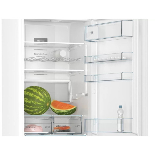 Холодильник Bosch Serie | 4 KGN39X 28R – кухонный помощник, который надолго сохранит вашу еду свежей. При этом обслуживание прибора будет предельно бесхлопотным, поскольку удаление наледи и инея происходит абсолютно без вашего участия. ИНТУИТИВНОЕ УПРАВЛЕНИЕ Модель двухконтурной конфигурации позволяет выбирать температуру в обоих отделениях обособленно. Для этого достаточно нажать на пару кнопок на контрольной панели. Клавиши снабжены понятными символами, чтобы вам было просто выставлять настройки. Поклонникам разумного потребления понравится энергосберегающий режим Eco с фиксированным уровнем охлаждения. ЭФФЕКТИВНОСТЬ И ГИГИЕНИЧНОСТЬ Система вентиляции Multi Airflow максимально равномерно распределяет потоки воздуха от верхней до нижней полки. А встроенный фильтр AirFresh создаёт надёжный щит от бактерий и неприятных запахов. СУПЕРФУНКЦИИ Пришли с рынка и наполнили Bosch Serie | 4 KGN39XI28R продуктами? В этом случае пригодятся режимы SuperFreeze и SuperCooling, при которых в камерах устанавливается наиболее низкая температура. Через несколько часов программы автоматически отключаются, чтобы не расходовалась лишняя электроэнергия. ВСЁ ПРОДУМАНО Во трёх контейнерах зоны свежести VitaFresh созданы идеальные условия для длительного хранения фруктов, овощей и другой еды. Полки EasyAccess, сделанные из высокопрочного закалённого стекла, без проблем выдвигаются, даже когда на них стоит увесистый торт или кастрюля с супом. ПОЛЕЗНЫЕ ДЕТАЛИ Содержимое каждого яруса ярко освещается долговечными LED-лампочками. Не оставить холодильник открытым помогут звуковые и оптические сигналы. СОВЕРШЕННАЯ ФОРМА Модель конструкции Perfect Fit вы легко поставите вплотную к стене или к кухонному гарнитуру. Никаких зазоров ни сзади, ни по бокам не потребуется. И даже если дверца будет открываться только на 90°, у вас всё равно будет свободный доступ к нижним ящикам.
