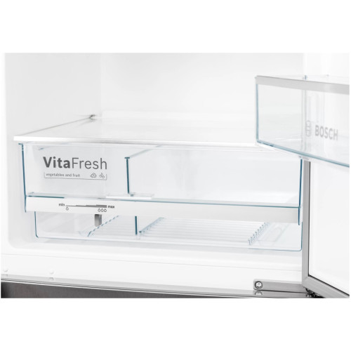 Когда мы кладём продукты в морозильную камеру, температура в ней повышается, что может привести к размораживанию и потере вкуса. Функция SuperFreezing обеспечивает быстрое замораживание продуктов, предотвращая размораживание содержимого морозильной камеры. Холодильники с функцией автоматического замораживания возвращаются в нормальный режим работы при достижении необходимой температуры, предотвращая расходование энергии впустую. В результате замороженные продукты сохраняют свой вкус даже при добавлении продуктов. Холодильники Bosch VitaFresh оснащены ярким и равномерным светодиодным освещением холодильной камеры. Боковой и потолочный источники света расположены таким образом, что не перекрываются продуктами, поэтому содержимое полок и зоны свежести отлично просматривается.