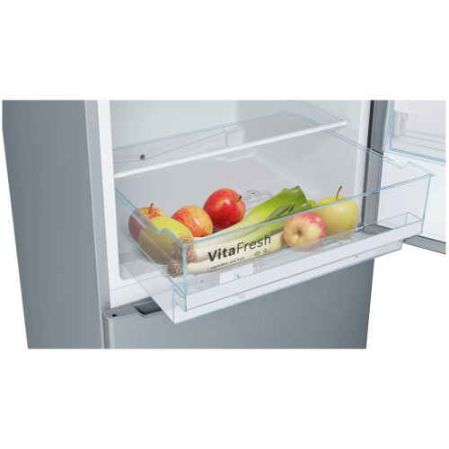 Холодильник с нижней морозильной камерой 200 x 60 cm под нержавеющую сталь. Технология NatureCool сохраняет естественную свежесть, вкус и аромат продуктов благодаря оптимальному уровню влажности. Светодиодная подсветка привносит в холодильник Bosch VitaFresh совершенно новую концепцию освещения, гарантируя равномерное освещение всего пространства без бликов. Светодиодные лампы потребляют меньше электроэнергии, чем обычные лампы накаливания, и служат в течение всего срока службы прибора. Постоянная температура в интерьере холодильника - решающий фактор в достижении длительного срока хранения продуктов. Датчики FreshSense постоянно контролируют и поддерживают температуру в холодильном и морозильном отделениях. Функция SuperFreezing обеспечивает быстрое замораживание новых продуктов, предотвращая размораживание содержимого морозильной камеры. Холодильники с функцией автоматического замораживания возвращаются в нормальный режим работы при достижении необходимой температуры, предотвращая расходование энергии впустую. В результате замороженные продукты сохраняют свой вкус даже при добавлении новых продуктов.
