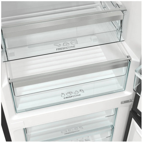 Для большой семьи идеально подойдет холодильник Gorenje RK6191SYBK, у него 2 камеры и 2 двери. Температурные режимы в обеих камерах поддерживаются одним стандартным компрессором, заправленным хладагентом R600a. При отключении питания температура внутри сохраняется в течение 17 ч. Уровень шума не превышает 38 дБ. Класс энергопотребления А+. Годовое потребление энергии всего 284,7 кВт*ч. В холодильной камере объемом 208 л холодильника Gorenje RK6191SYBK есть 3 полки из стекла и 2 ящика. Для хранения зелени предусмотрена зона свежести. Снизу имеется морозильная камера объемом 112 л. Внутри имеется 3 ящика. За сутки камера замораживает до 5 кг продуктов. Система размораживания в обеих камерах FrostLess.