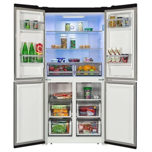 Отдельностоящий холодильник многодверный HIBERG RFQ-490DX NFGB inverter обладает эффектным дизайном. Устройство привлекательно выглядит не только снаружи, но и внутри. Полки и ящики холодильника выполнены из высококачественных, долговечных материалов. В наличии светодиодная подсветка, сочетающая высокую яркость и низкое энергопотребление. Холодильник оснащен компрессором инверторного типа, отличающимся малым уровнем шума, увеличенным ресурсом и низким энергопотреблением. Диапазон температуры в морозильной камере – от -23 до -15 °C. Температурные границы, характеризующие холодильную камеру – 0 и 6 °C. Безопасности эксплуатации холодильника способна помочь функция блокировки от детей. Управление у модели сенсорное. Общий объем холодильника составляет 490 л. Модель подходит для «обслуживания» многочисленной семьи. При этом холодильник нельзя назвать громоздким: его ширина, глубина и высота равны 83.6, 63.6 и 183 см соответственно. Материал покрытия дверей – черное стекло.
