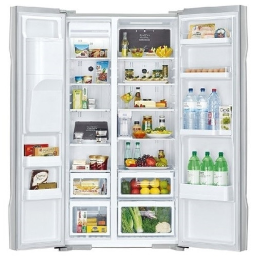 Холодильник Hitachi R-S 702 GPU2 GS используется для длительного хранения продуктов, их охлаждения и заморозки, а также для приготовления льда. Оборудование состоит из отделений: холодильного, морозильного и овощного. Особенности холодильного отделения: Полки из закаленного стекла Отделение для молочных продуктов Светодиодная подсветка Резервуар для воды фильтром Особенности морозильного отделения: Полки из закаленного стекла 2 выдвижных ящика Светодиодная подсветка Автоматический льдогенератор Особенности овощного отделения: 2 выдвижных ящика с повышенным увлажнением Особенности холодильника: Система охлаждения Dual Fan Cooling Инверторный компрессор и управление Эко-сенсор температуры Сенсорная панель управления Сигнал открытой двери Система фильтрации Nano Titanium Индикатор мощности охлаждения (на панели управления) Режим быстрое охлаждение Режим быстрая заморозка Режим энергосбережения Диспенсер для льда и воды Режимы кубики льда и ледяная крошка Дополнительные характеристики: Количество дверей: 2 шт. Глубина без дверей: 600 мм Глубина без ручек: 720 мм Полезный объем: 589 л Хладагент: R-600A Цвет: серебристое стекло
