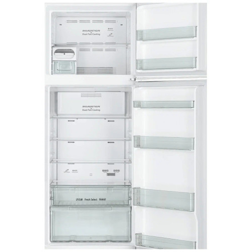 Двухкамерный холодильник с верхним расположением морозильной камеры. Морозильное отделение 12 часов сохраняет холод при отключении электроэнергии. Мощность замораживания - 8 кг в сутки. Есть светодиодная подсветка. Полка из закаленного стекла. Перемещаемый поворотный лоток для приготовления льда. В холодильном отделении три полки из закаленного стекла. Зона свежести с переключателем режима Fresh Select (мясо/молоко, овощи/фрукты). Система охлаждения Dual Fan Cooling с двумя выделенными вентиляторами. Увеличенное отделение для овощей с сохранением влажности Moisture-Guard. В холодильнике используется технология фильтрации Nano Titanium с применением каталитического нейтрализатора TiO2, обеспечивающего мощный антибактериальный, противоплесневый и дезодорирующий эффект. Кроме того, фильтр не требует ни обслуживания, ни дополнительной электроэнергии.