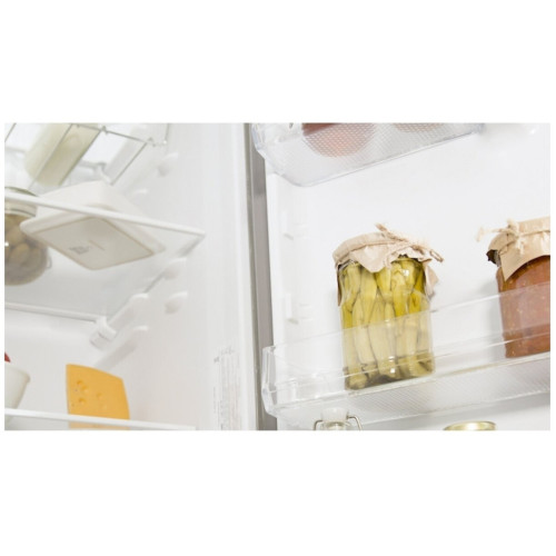 Холодильник с нижней морозильной камерой Hotpoint-Ariston HF 6200 W оснащён вентилятором, который обеспечивает равномерное распределение потоков воздуха в верхнем отделении. Это позволяет не задумываясь ставить молоко, йогурт или другие продукты, чувствительные к перепадам температуры, на любую полку холодильника.