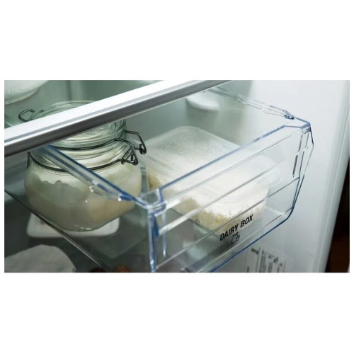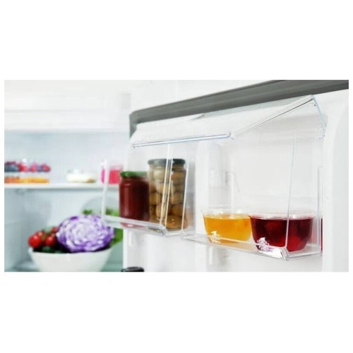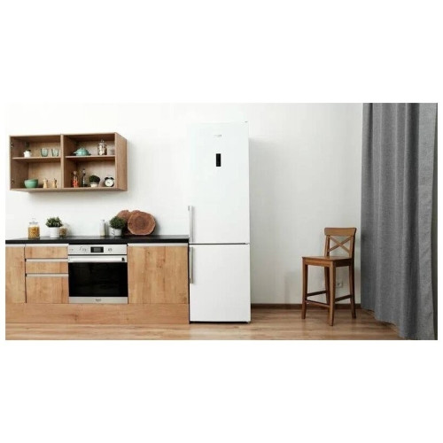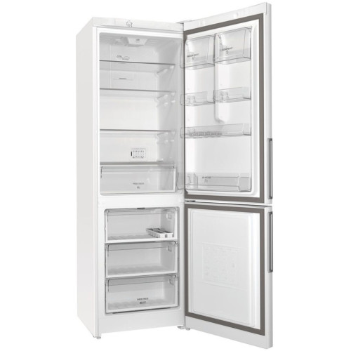 Холодильник Hotpoint-Ariston HMD 520 W представляет собой устройство двухкамерного типа. Продуманная конструкция помогает экономно использовать пространство. Благодаря оптимальному расстоянию между полками в основной камере есть возможность хранить готовые блюда в высоких кастрюлях и заготовки в банках. Для зелени, овощей и фруктов есть вместительный ящик. На подставках, расположенных на двери, удобно ставить соусы, яйца, йогурты и молоко. Светодиодная лампа предназначена для равномерного освещения отделения. Холодильник Hotpoint-Ariston HMD 520 W оборудован морозильной камерой с общим объем 87 л. Это позволяет хранить большое количество полуфабрикатов. В трех пластиковых ящиках можно замораживать мясо, рыбу и овощи отдельно друг от друга. Управление осуществляется электронными клавишами. Информация о режиме работы и температуре отображается на сенсорном дисплее. Если пользователь не закрыл дверь, активируется звуковая сигнализация. Это предотвращает поломку модели. При отключении электроэнергии устройство продолжает поддерживать холод в течение 18 ч.