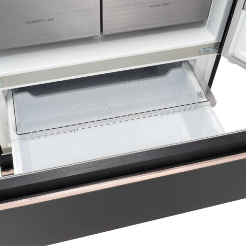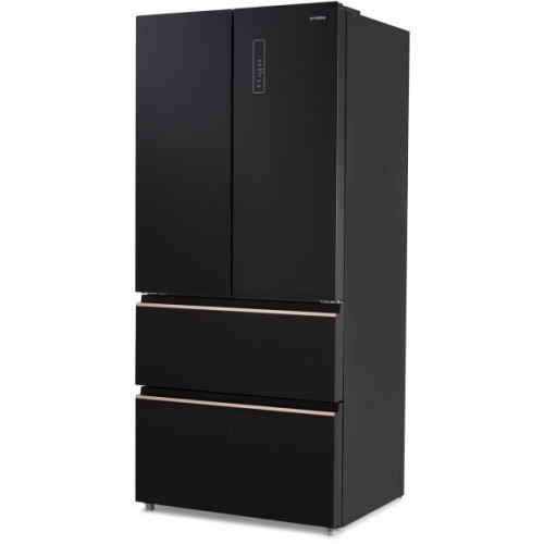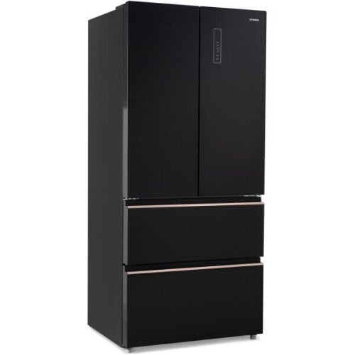 Полезный объем холодильника 540 л Полезный объем холодильной камеры 354 л Полезный объем морозильной камеры 186 л Комфортно храните продукты и напитки для большой семьи во вместительном трехкамерном холодильнике Hyundai CM5544F . Модель также пригодится тем, кто часто принимает гостей и любит много готовить. Большой объем. Оцените удобный доступ к содержимому холодильника благодаря четырехдверной распашной конструкции. Храните продукты и напитки во вместительной холодильной камере шириной 85 см. Внутри находятся три полки из прочного закаленного стекла. Регулируйте расстояние между ними, чтобы комфортно разместить в холодильнике большой торт или кастрюли. Кладите овощи и фрукты в три выдвижных ящика. Морозильная камера расположена снизу и разделена на два отсека. Каждый из них открывается отдельной дверью, что поможет аккуратнее разместить продукты. Широкая функциональность. Модель умеет работать в режимах «Суперохлаждение» и «Суперзаморозка». Регулируйте уровень влажности, чтобы надежнее сохранить сезонные фрукты и овощи. Храните косметику и лекарственные средства в предусмотренном для этого отсеке Beauty Space. Таким образом крем для лица, маски и препараты надолго сохранят полезные свойства. Сенсорное управление на дверце. Легко настраивайте режим работы холодильника и устанавливайте температуру в одно касание. Информативный дисплей отображает все показатели. Total No Frost. Забудьте о том, что нужно размораживать холодильник. Продвинутые технологии помогут сохранить и холодильную, и морозильную камеры сухими, чистыми, без инея и наледи. Элегантный дизайн. Черные стеклянные двери и корпус Hyundai CM5544F смотрятся современно и благородно. Модель легко впишется в интерьер кухни в стиле хай-тек, лофт, минимализм. Добавить в корзину
