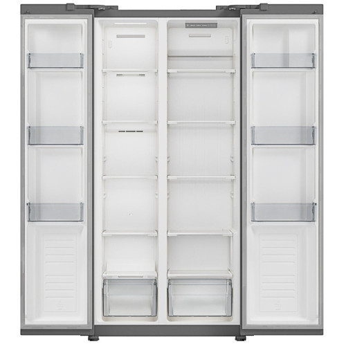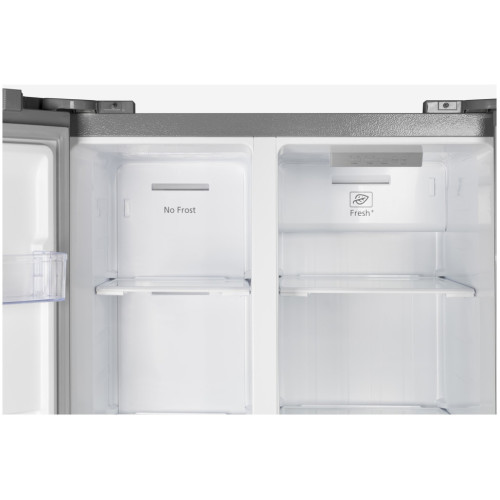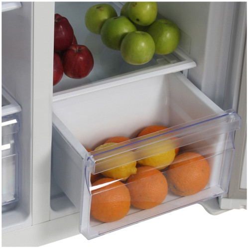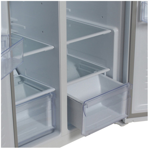 Стильный и вместительный 2-х дверный холодильник HYUNDAI CS4502F (тип Side by Side) привлекает и своим современным дизайном, и продуманным функционалом. Полезный объем холодильника HYUNDAI CS4502F обеспечивает правильное хранение продуктов и напитков для всей семьи. Регулируемые по высоте полки из закаленного стекла и выдвижные ящики позволяют распределять продукты, чтобы было удобно их хранить и доставать. Дополнительно при открывании дверцы холодильной камеры включается светодиодное освещение. В дверках холодильника предусмотрены дополнительные вместительные полки для хранения напитков, детского питания и продуктов в компактных упаковках. Управление настройками холодильника и морозильной камеры сенсорное – легким касанием Вы можете менять желаемую температуру или включить режим «суперохлаждение» или «суперзамораживание». В холодильнике HYUNDAI CS4502F предусмотрена блокировка панели управления, чтобы случайно никто не поменял температурный режим. Звуковой сигнал проинформирует о том, что двери холодильника не полностью закрыты. Не стоит беспокоиться об образовании наледи и инея в морозильной камере – размораживание происходит автоматически по технологии No Frost. В холодильнике HYUNDAI CS4502F предусмотрены регулируемые по высоте ножки, на случай если поверхность, на которую будет установлен холодильник не ровная.