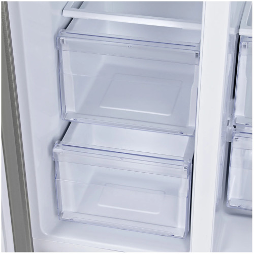 В холодильнике HYUNDAI CS6503FV целых 612 полезных литров объема, невероятно продуманная система размещения продуктов и множество полезных опций. Технология многопоточного охлаждения непрерывно поддерживает заданный температурный режим, борется с неприятными запахами и сохраняет свежесть продуктов. Полки изготовлены из закаленного стекла, они ударопрочные, крепкие, антибактериальное покрытие не способствует накапливанию грязи и опасных бактерий. Ультранадежный инверторный компрессор работает бесшумно, при этом потребляя мало энергии - модели HYUNDAI CS6503FV присвоен класс энергопотребления А++. Благодаря внешнему дисплею можно легко и быстро менять температурный режим, запускать систему «суперохлаждения». Что касается разморозки, удаления наледи, то об этом заботится технология No Frost, которая упрощает использование холодильника и избавляет от необходимости проводить частые профилактические работы.