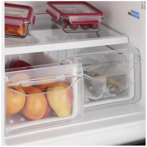 Холодильник Indesit DS 318 с комфортным уровнем шума 38 дБ поможет сохранить ваши продукты свежими.Холодильная камера с капельной системой разморозки избавит от необходимости делать это вручную — она конденсирует влагу на задней поверхности, затем собирает ее в отдельном отсеке. Лишняя жидкость испаряется под воздействием высоких температур. Емкости с едой удобно размещаются на полках из закаленного стекла, а овощи и фрукты можно сложить в специальные контейнеры.Нижнее отделение оснащено морозильником мощностью заморозки до 4 кг в сутки. Универсальные двери на технике можно перевесить под левую руку. При отключении от питания микроклимат сохраняется до 15 ч.Система Low Frost в сочетании со стильными стеклянными полками эффективно предотвращают образование наледи внутри камеры. Вне зависимости от системы разморозки вашего холодильника, продукты будут под защитой от пересыхания благодаря постоянному поддержанию оптимальной влажности.