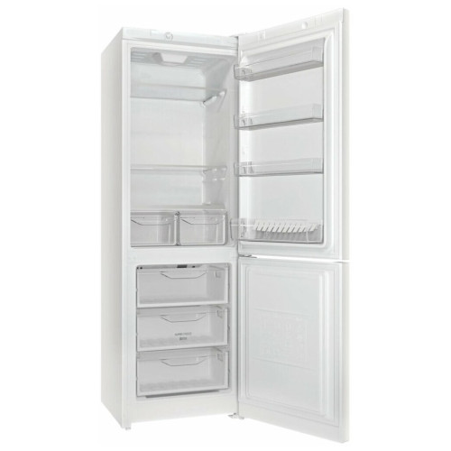 Холодильник Indesit DS 318 с комфортным уровнем шума 38 дБ поможет сохранить ваши продукты свежими.Холодильная камера с капельной системой разморозки избавит от необходимости делать это вручную — она конденсирует влагу на задней поверхности, затем собирает ее в отдельном отсеке. Лишняя жидкость испаряется под воздействием высоких температур. Емкости с едой удобно размещаются на полках из закаленного стекла, а овощи и фрукты можно сложить в специальные контейнеры.Нижнее отделение оснащено морозильником мощностью заморозки до 4 кг в сутки. Универсальные двери на технике можно перевесить под левую руку. При отключении от питания микроклимат сохраняется до 15 ч.Система Low Frost в сочетании со стильными стеклянными полками эффективно предотвращают образование наледи внутри камеры. Вне зависимости от системы разморозки вашего холодильника, продукты будут под защитой от пересыхания благодаря постоянному поддержанию оптимальной влажности.