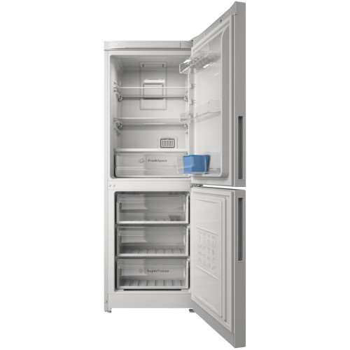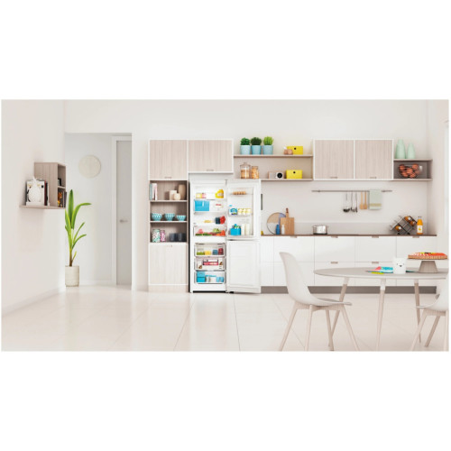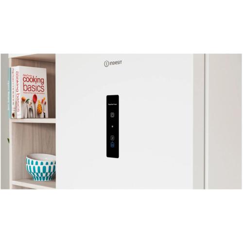 Отдельно стоящий холодильный шкафа Indesit с морозильной камерой: белый цвет. Технология No Frost снижает влажность в морозильной камере, предотвращая образование льда. Стеклянные полки с профильными краями гарантируют надежность и безопасность. Удобная и надежная дверная полка для хранения бутылок. LED подсветка ярко и равномерно освещает пространство холодильной камеры для еще более комфортного использования. Total No Frost. Эффективно предотвращает образование льда в холодильнике и морозильной камере, забудь про ручную разморозку. Push&Go. Загрузи недельный запас продуктов и запусти процесс охлаждения всего одним нажатием. Продукты надолго сохранят свою свежесть благодаря ускоренному восстановлению температуры