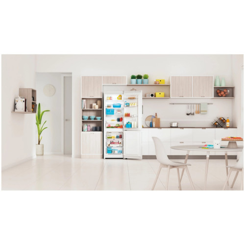 Холодильный шкаф Indesit с морозильной камерой: высокая морозильная камера, в которой поместится еда для всей семьи. Технология No Frost снижает влажность в морозильной камере, предотвращая образование льда. Стеклянные полки с профильными краями гарантируют надежность и безопасность. Удобная и надежная дверная полка для хранения бутылок.