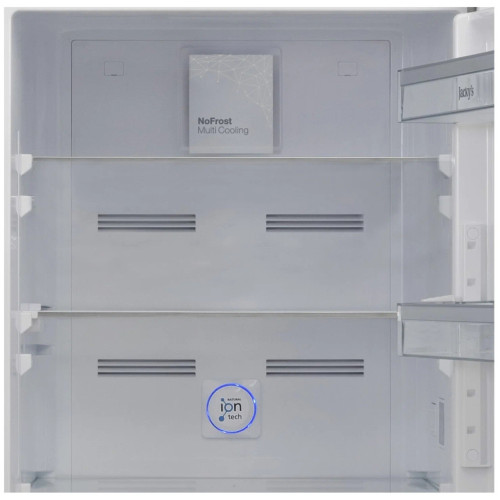 Холодильник Jacky's JR FB492G - двухкамерная модель с нижним расположением морозильной камеры, общим объёмом 341 литров, выполненная в цвете черное стекло. Великолепная модель, сочетающая в себе лаконичный английский дизайн и непревзойденное европейское качество. Хромированная окантовка полочек подчеркивает изысканность деталей и позволяет разместить модель в интерьере любой современной кухни; Электронный дисплей обеспечивает простое и интуитивно-понятное управление; Система охлаждения No Frost предотвращает образование льда и инея на стенках; Объемная морозильная камера с системой интенсивного охлаждения помогает быстро разместить и охладить даже большой объем продуктов. Складывающаяся полка V Shelf Обеспечивает более гибкое пространство для хранения и большее пространство на полке, благодаря сдвижному механизму, состоящему из двух частей. Регулируемая по высоте дверная полка V Lift С помощью специального механизма регулируется высота полки для бутылок. Она может быть увеличена до более высоких емкостей или быть уменьшена для экономии места. Положение полки можно установить на 6 разных высот, не снимая полку и не вытаскивая наполнение, что очень удобно в использовании. ION технология Natural Ion Tech распространяет отрицательные ионы, которые нейтрализуют частицы неприятного запаха и пыли в воздухе. Удаляя эти частицы из воздуха в холодильнике, Natural Ion Tech улучшает качество воздуха и удаляет содержащиеся в воздухе бактерии до 99,9%. ION технология позволяет увеличить срок хранения овощей и фруктов в два раза. Технология Maxi Fresh помогает дольше сохранять пищу свежей, поглощая этиленовый газ (биопродукт, выделяющийся естественным образом из свежих продуктов) и неприятные запахи из отделения для овощей.