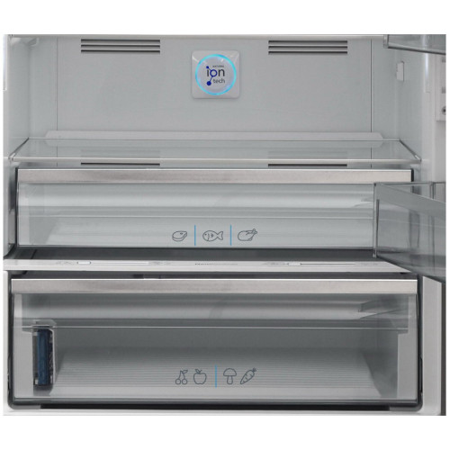Двухкамерный холодильник с нижним расположением морозильной камеры Общие данные: Размеры: высота (см): 192 ширина (см): 70 глубина (см): 71,2 Общий объем/ Полезный объем: Холодильника (л): 510/461 Холодильной камеры (вкл. зону свежести) (л): 355/333 Морозильной камеры (л): 155/128 Зона свежести: 24 л Тип управления: электронный Класс энергопотребления: A+ Климатический класс: SN-T (от +10°С до +43°С) Количество компрессоров: 1 Годовое потребление энергии: 409 кВт/год Цвет: черное стекло Холодильное отделение: Полки из стекла Складывающаяся полочка V-shelf Регулируемая по высоте полочка на двери V-lift Зона свежести Система многопоточного охлаждения Multi cooling Система Nо Frost (Frost Free, Ноу Фрост) Боковое LED освещение Технология Natural Ion Tech Maxi Fresh Морозильное отделение: Система Nо Frost (Frost Free, Ноу Фрост) Время сохранения холода при отключении электроэнергии: 24 ч Мощность замораживания: 9 кг/сутки Дополнительная информация: Дисплей Уровень шума: 43 дБ