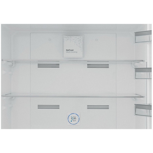 Общие данные: Размеры: высота (см): 186 ширина (см): 84 глубина (см): 75 Общий объем/ Полезный объем: Холодильника (л): 620/564 Холодильной камеры (вкл. зону свежести) (л): 418/400 Морозильной камеры (л): 366/202 Зона свежести: -/34 л Тип управления: электронный Класс энергопотребления: A+ Климатический класс: SN-T (от +10°С до +43°С) Количество компрессоров: 1 Годовое потребление энергии: 473 кВтч Цвет: нержавеющая сталь Холодильное отделение: Полки из стекла 5 полочек на дверце Хромированные окантовки полочек Зона свежести Chiller Система No Frost (Frost Free, Ноу Фрост) 2 ящика для овощей и фруктов Natural Ion Tech (технология ионизации) увеличивает срок хранения овощей и фруктов в 2 раза! Благодаря данной технологии внутри камеры холодильника распространяются отрицательные ионы, которые нейтрализуют частицы неприятного запаха и бактерии до 99,9% Морозильное отделение: Система No Frost (Frost Free, Ноу Фрост) Время сохранения холода при отключении электроэнергии: 18 ч Мощность замораживания: 10 кг/сутки 3 отделения Дополнительная информация: Электронный дисплей Функция Freezer Shield Уровень шума: 43 дБ
