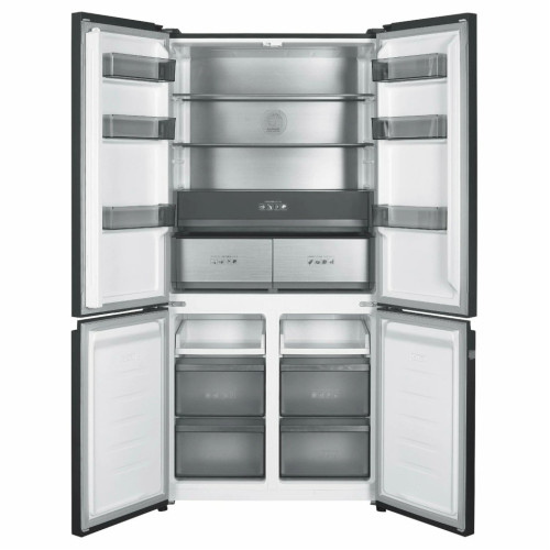 Основные: Тип:Отдельностоящая техника Тип продукта:Четырехдверный Цвет:Черное стекло Цвет боковых стенок:Серый графит Варианты цвета:Черное стекло Черная нержавеющая сталь Материал фронтальной поверхности двери:Стекло Управление:Сенсорное Дисплей:Цифровой дисплей Общий объем (л):503 Холодильная камера (л):346 Морозильная камера (л):76+81 Тип охлаждения холодильной камеры:No Frost Динамическое охлаждение:Да Задняя стенка Cold Metal:Да Интенсивное охлаждение Super Cool:Да Ящик зона свежести:Да Специальные зоны:Ящик в холлодильном отдеении с изменяемым температурным режимом Зона с изменяемым температурным режимом Контейнер для овощей (шт):2 Стеклянные полки (шт):2 Дверные полки (шт):6 Подставка для яиц:Да Тип разморозки морозильной камеры:No Frost Интенсивная заморозка:Да Контейнеры морозильника (шт):4 Лоток для льда:Да Дополнительные особенности:Инверторный компрессор Возможность частичного встраивания: установка в кухонную нишу: глубина прибора 600 мм и минимальное расстояние между боковыми стенками и мебелью – всего 4 мм Цветной дисплей Дополнительные характеристики: Класс энергопотребления:A+ Энергопотребление (кВт/год):358 Мощность подключения (Вт):180 Освещение:LED Ламп освещения (шт):1 Сигнализация открытой двери:Да Приветственный сигнал при открытии дверцы:Да Мощность замораживания (кг/сут):13 Тип компрессора:Инверторный Хладагент:R600A Уровень шума, (дБ):40 Перенавешиваемые двери:Нет Комбинация Side-by-Side:Нет Планка соединительная:Нет Регулировка высоты:Да Габариты (ВхШхГ) (мм):1905х910х600 Масса прибора (кг):105.8 Срок гарантии (мес.):24
