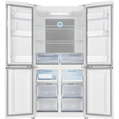 Общие данные: Размеры: высота (см): 183 ширина (см): 91.1 глубина (см): 70.6 Общий объем/ Полезный объем: Холодильника (л): 542/- Холодильной камеры (л): 367/ Морозильной камеры (л): 175/- Тип управления: электронный Количество компрессоров: 1 Климатический класс: SN-T (от +10°C до +43°C) Цвет: белое стекло Холодильное отделение: Полки из закаленного стекла 6 полок на двери Зона свежести Система No Frost (Frost Free, Ноу Фрост) Суперохлаждение Светодиодное освещение 2 прозрачных ящика для овощей 2 подставки для яиц (2х10 шт.) Морозильное отделение: Система No Frost (Frost Free, Ноу Фрост) Мощность замораживания: 14 кг/24ч Суперзаморозка 4 прозрачных ящика 2 полки для заморозки Ледогенератор механический Дополнительная информация: Инверторный компрессор Электронное управление LED дисплей Светодиодное освещение камеры Антибактериальный пластик Фасад стеклянный Режим «Отпуск» Уровень шума, дБ: 42
