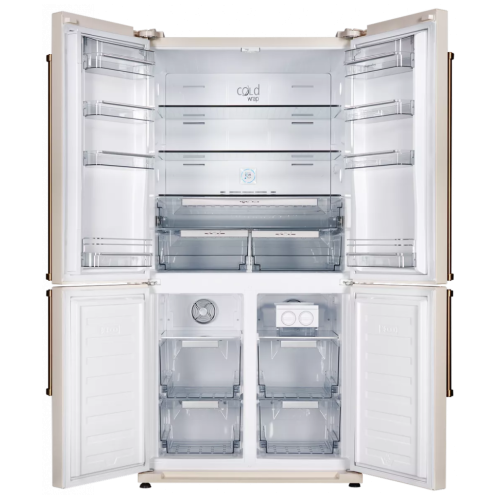 Холодильник Kuppersberg NMFV 18591 C Коллекция Classic Отдельностоящий холодильник многокамерный Количество дверей 4 Климатический класс T/N Общий объем, л 560 Страна производства ТУРЦИЯ Высота, см 185 Ширина, см 91 Глубина, см 78 Морозильное отделение Выдвижные ящики 4 Полки для заморозки 2 Объем, л 170 Мощность замораживания 13кг/24ч Энергоэффективность Класс энергопотребления A+ Управление Электронное управление да, сенсорное Основная информация Уровень шума, дБ 41 Холодильное отделение Полезный объем, л 390 Количество стеклянных полок 3 Навесные дверные полки 8 Отсек для овощей 2 Зона свежести да Комплектация Полка для яиц да Преимущества LED дисплей да Антибактериальный пластик да Ледогенератор да. механический Размораживание морозильной камеры No Frost Размораживание No Frost Система No Frost да, полный Режим «Отпуск» да Светодиодное освещение камеры да Супер заморозка да Супер охлаждение да