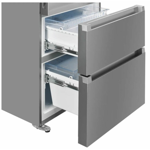 Многокамерный холодильник Kuppersberg RFFI 2070 X Общие данные: Размеры: высота (см): 200 ширина (см): 70.4 глубина (см): 69.4 Общий объем/ Полезный объем: Холодильника (л): 535/- Холодильной камеры (вкл. зону свежести) (л): 326/- Морозильной камеры (л): 114/- Зоны свежести (л): 25/- Тип управления: электронный Класс энергопотребления: А+ Количество компрессоров: 1 Климатический класс: SN-T (от +10°C до +43°C) Цвет: нержавеющая сталь Холодильное отделение: 3 полки из закаленного стекла, 2 из них регулируемые по высоте 4 навесные дверные полки Зона свежести Система No Frost (Frost Free, Ноу Фрост) Светодиодное освещение Супер охлаждение Отсек для овощей Подставка для яиц Морозильное отделение: Система No Frost (Frost Free, Ноу Фрост) Хранение при отключении питания, ч: 10 Мощность замораживания: 11 кг/24ч Супер заморозка Выдвижные ящики: 2 Емкость для льда Дополнительная информация: Инверторный компрессор LED дисплей Антибактериальный пластик Перенавешиваемые двери Уровень шума, дБ: 36 Режим «Отпуск»