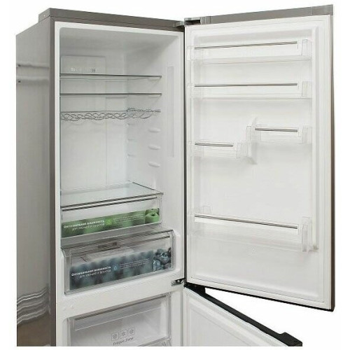 Общие характеристикиМорозильная камера: снизуЦвет / Материал покрытия: серебристый / металлУправление: электронноеЭнергопотребление: класс A+ (313.90 кВтч/год)Количество компрессоров: 1Количество камер: 2Количество дверей: 2Габариты (ШxГxВ): 60x66x195 смХолодЗона свежести: естьРазмораживание морозильной камеры: No FrostРазмораживание холодильной камеры: No FrostРежим «Отпуск»: естьМощность замораживания: до 15 кг/cуткиДополнительные возможности: суперзаморозка, индикация температурыОбъемОбщий объем: 338 лОбъем холодильной камеры: 243 лОбъем морозильной камеры: 95 лДругие функции и особенностиДисплей: естьГенератор льда: отсутствуетМатериал полок: стеклоВозможность перевешивания двери: естьУровень шума: до 43 дБКлиматический класс: N, SN, ST, TВес: 73 кгДополнительноГарантийный срок: 12 мес.