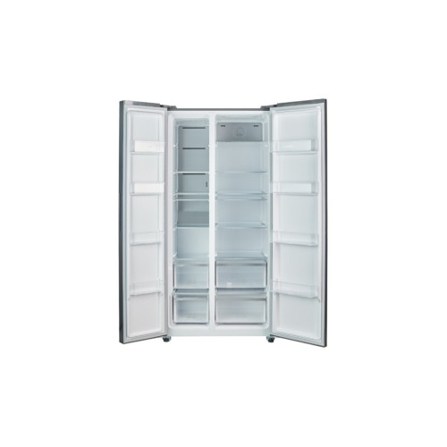 Система No Frost: в холодильном и морозильном отделении Размораживание холодильной камеры: автоматическое Размораживание морозильной камеры: автоматическое Мощность замораживания: 9.5 кг/сут Минимальная температура в холодильной камере: 2 °С Максимальная температура в холодильной камере: 8 °С Минимальная температура в морозильной камере: -22 °С Максимальная температура в морозильной камере: -14 °С Суперзаморозка: да Суперохлаждение: да Хладагент: R600a Объем и вместимость Общий объем: 673 л Объем холодильной камеры: 432 л Объем морозильной камеры: 241 л Функции и особенности Генератор льда: нет Защита от детей: да Режим "Отпуск": да Перевешиваемые двери: нет Зона свежести: да Освещение морозильной камеры: да Дополнительная информация Цвет: черный Гарантия: 12 мес Изготовитель: Китай Общие характеристики Тип: Side-by-Side Климатический класс: N, SN, ST Количество дверей: 2 шт Количество камер: 2 шт Инверторный: да Количество компрессоров: 1 шт Расположение морозильной камеры: боковое Уровень шума: 40 дБ Полки и ящики Материал полок: стекло Полок в холодильной камере: 4 шт Полок на дверце холодильной камеры: 4 шт Ящиков в холодильной камере: 2 шт Регулируемые по высоте полки: да Полка-трансформер: нет Ящиков в морозильной камере: 2 шт Полок на дверце морозильной камеры: 4 шт Антибактериальное покрытие: нет Управление и дисплей Тип управления: электронный Внешний дисплей: да Индикация температуры: да Индикация открытой двери: да Индикация повышения температуры: да Индикация отключения электропитания: да Управление со смартфона: нет Энергопотребление Энергопотребление: 384 кВтч/год Класс энергопотребления: A++ Режим энергосбережения: да Мощность подключения: 196 Вт Габариты и вес Вес: 95 кг Высота: 190.5 см Глубина: 72.6 см Ширина: 90.5 см Габариты (ВхГхШ): 190,5х72,6х90,5 см Длина кабеля: 1.8 м Вес в упаковке: 104 кг Высота упаковки: 200 см Глубина упаковки: 79.5 см Ширина упаковки: 97.1 см