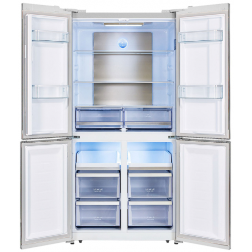 Холодильник трехкамерный LEX LCD550WID с полезным объемом 417 литров подойдет для большой семьи из 4-5 человек. Электронное управление позволяет выставить температуру с точностью до одного градуса, а наличие внешнего дисплея на дверце упрощает выбор требуемой функции. В холодильной камере температура поддерживается на уровне +8 °С, а в морозилке можно заморозить до 12 кг мяса или рыбы в сутки. Режим суперзаморозки будет полезен в тех случаях, когда нужно загрузить в морозильное отделение большое количество разных полуфабрикатов сразу по приходу домой из супермаркета. Полки для хранения изготовлены из прочного закаленного стекла, что дает возможность без опаски ставить на них тяжелую посуду. В данной модели установлен инверторный компрессор, который отличается экономичным энергопотреблением и работает очень тихо. Даже при включении вентиляторов уровень шума не превышает 42 дБ. Особенности индикация открытой двери; светодиодная подсветка; возможность регулировки по высоте; безопасный хладагент R600a. В случае аварийного отключения электричества в холодильнике на протяжении 12 часов будет сохраняться холод, благодаря чему в течение этого времени продукты не испортятся и не разморозятся. Уезжая на дачу или в другой город, можно активировать функцию «Отпуск», чтобы снизить потребление электроэнергии до минимума. Система No Frost За счет равномерного распределения холодного воздуха на стенках не образуется наледь, поэтому размораживать холодильник не нужно. Достаточно просто периодически протирать изнутри влажной тряпкой.