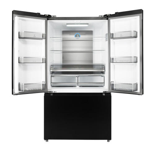 Полезный объем 581 л Объем холодильной камеры 404 л Объем морозильной камеры 177 л Большой объем холодильника LFD595 — 581 литр — позволяет хранить много продуктов и напитков даже для большой семьи. Оба отделения оснащены системой Total No Frost, которая исключает появление инея благодаря равномерному распределению холодного воздуха по всему внутреннему пространству. Конструкция French Door дает возможность легко и эффективно хранить продукты в холодильной и морозильной камерах. Модель в черном цвете прекрасно дополнит практически любой кухонный интерьер. Электронное управление двумя контурами охлаждения помогает точно настраивать температуру внутри каждой камеры. Холодильник имеет удобный дисплей и яркую LED-подсветку, которые упрощают контроль условий хранения. Функции суперохлаждения и суперзаморозки позволяют быстро снижать температуру, сохраняя вкус и питательные свойства продуктов. Инверторный компрессор делает работу холодильника энергоэффективной и тихой. Модель может поддерживать температуру в течение 12 часов, если дома отключится свет, поэтому у вас не будет поводов беспокоиться даже в непредвиденной ситуации. Все эти преимущества делают холодильник LFD595 отличным выбором для тех, кто по-настоящему ценит удобство, стиль и надежность.