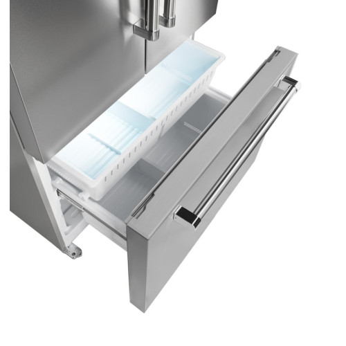 Большой объем холодильника LFD595 — 581 литр — позволяет хранить много продуктов и напитков даже для большой семьи. Оба отделения оснащены системой Total No Frost, которая исключает появление инея благодаря равномерному распределению холодного воздуха по всему внутреннему пространству. Конструкция French Door дает возможность легко и эффективно хранить продукты в холодильной и морозильной камерах. Модель в черном или стальном цвете прекрасно дополнит практически любой кухонный интерьер. Электронное управление двумя контурами охлаждения помогает точно настраивать температуру внутри каждой камеры. Холодильник имеет удобный дисплей и яркую LED-подсветку, которые упрощают контроль условий хранения. Функции суперохлаждения и суперзаморозки позволяют быстро снижать температуру, сохраняя вкус и питательные свойства продуктов. Инверторный компрессор делает работу холодильника энергоэффективной и тихой. Модель может поддерживать температуру в течение 12 часов, если дома отключится свет, поэтому у вас не будет поводов беспокоиться даже в непредвиденной ситуации. Все эти преимущества делают холодильник LFD595 отличным выбором для тех, кто по-настоящему ценит удобство, стиль и надежность.