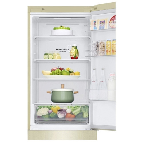 Быстрое и равномерное охлаждение Панель холодного воздуха в верхней части холодильника обеспечивает на 32% более быстрое и равномерное охлаждение, чтобы ваши продукты сохранялись свежими еще дольше. Тихая работа Уровень шума в новых холодильниках LG DoorCooling+ 36 дБ, что на 25% ниже, чем в предыдущих моделях. Тихая и надежная работа, чтобы ничего не нарушало вашего спокойствия дома. Нулевой зазор С нулевым зазором холодильник LG можно ставить вплотную к стене и открывать дверь на 90°. Благодаря этому ящики выдвигаются беспрепятственно. Многопоточное охлаждение Multi Air Flow Система многопоточного охлаждения (Multi Air Flow) равномерно распределяет холодный воздух для того, чтобы продукты оставалисьсвежими дольше даже на верхних полках холодильника. Total No Frost Холодильники с технологией LG Total No Frost больше не требуют разморозки морозильной камеры, благодаря принудительному обдуву холодным воздухом.