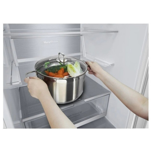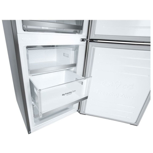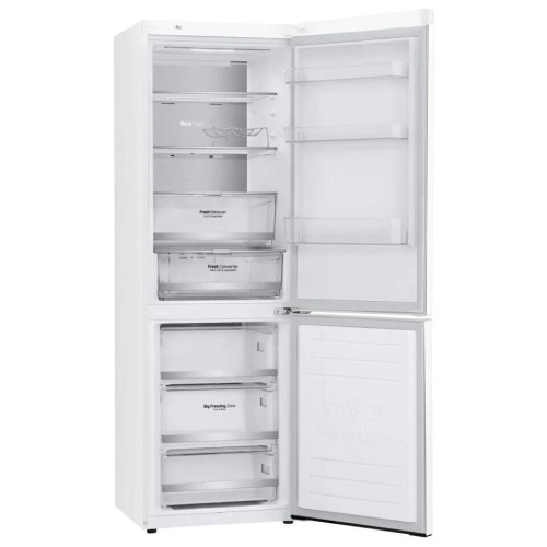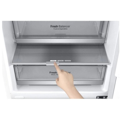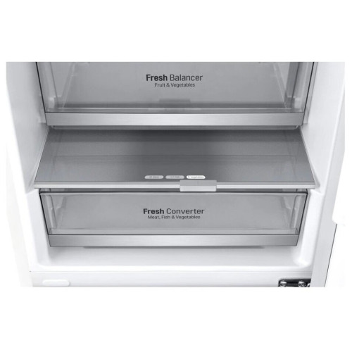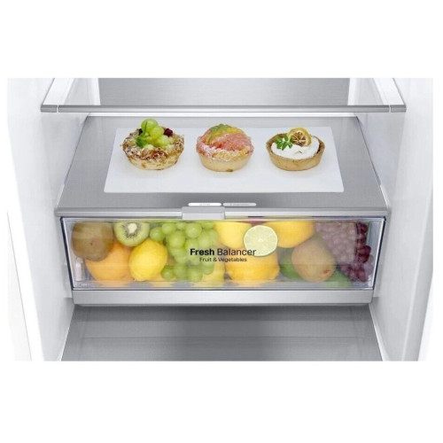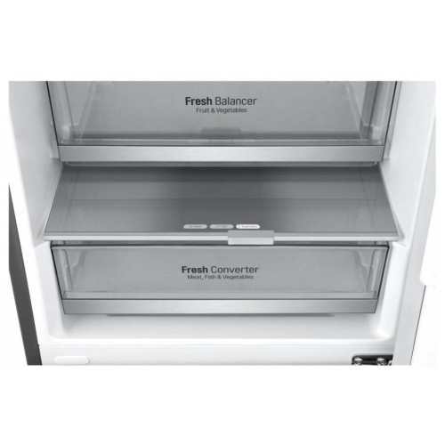 Панель холодного воздуха в верхней части холодильника обеспечивает на 32% более быстрое и равномерное охлаждение, чтобы ваши продукты сохранялись свежими еще дольше. При помощи простого регулятора FRESHBalancer поддерживает оптимальную влажность для ваших овощей и фруктов. Различные продукты требуют различных температурных режимов хранения. С помощью FRESHConverter можно выбрать один из трех температурных режимов (-2?: Мясо/ 0?: Рыба / 3?: Овощи). Полка для вина и складная полка в два сложения позволяют легко группировать продукты по типу для удобной организации продуктов внутри холодильника. Усовершенствованная складная полка теперь имеет два этапа сложения, что позволяет хранить крупные и габаритные продукты или блюда. Если вы истинный ценитель вина, то удобная винная полка – то, что вам нужно. Теперь она позволяет хранить до 5 бутылок. Уровень шума в новых холодильниках LG DoorCooling+ 36 дБ, что на 25% ниже, чем в предыдущих моделях. Тихая и надежная работа, чтобы ничего не нарушало вашего спокойствия дома. С нулевым зазором холодильник LG можно ставить вплотную к стене и открывать дверь на 90°. Благодаря этому ящики выдвигаются беспрепятственно.