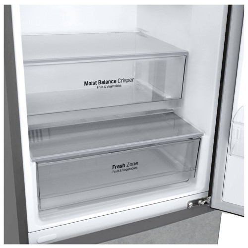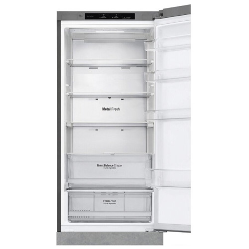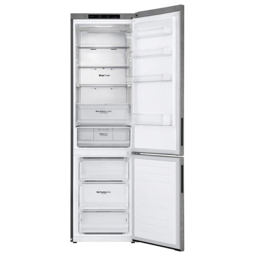 DoorCooling+ Технология DoorCooling+ обеспечивает дополнительное охлаждение из панели в верхней части корпуса. Оно выполняется на 32% быстрее, чем в моделях без этой системы. За счёт этого на всех полках, в том числе на тех, что установлены в двери, поддерживается постоянная температура. LG DoorCooling+ GA-B509CCIL – стильный и вместительный двухкамерный холодильник. Благодаря объёму 384 л в нём можно хранить большое количество продуктов. СКЛАДНАЯ ПОЛКА В основном отделении есть усовершенствованная складная полка. Благодаря двум вариантам складывания она позволяет хранить крупные и габаритные продукты или блюда. ТИХАЯ РАБОТА Максимальный уровень шума в новых устройствах из серии LG DoorCooling+ составляет 36 дБ. Это не громче приглушённого разговора и на 25% ниже, чем в предыдущих моделях. НУЛЕВОЙ ЗАЗОР Поставьте холодильник вплотную к стене и открывайте дверь на 90°, чтобы беспрепятственно выдвигать ящики. Multi Air Flow. Система многопоточного охлаждения равномерно распределяет холодный воздух для того, чтобы продукты дольше оставались свежими, даже если они лежат на верхних полках.