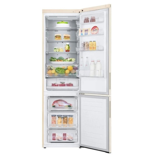 Более быстрое и равномерное охлаждение благодаря многопоточному охлаждению Multi Air Flow и технологии DoorCooling+. Шум от работы снижен до 36 дБ. Складная в два этапа полка позволит разместить более габаритные предметы. Удаленное управление настройками холодильника с приложением LG ThinQ. Технология LG Total No Frost позволяет не размораживать морозильную камеру.