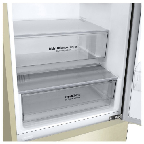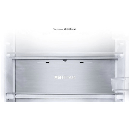 Панель холодного воздуха в верхней части холодильника обеспечивает на 32%* более быстрое и равномерное охлаждение, чтобы ваши продукты сохранялись свежими еще дольше. Уровень шума в новых холодильниках LG DoorCooling+ 36 дБ, что на 25% ниже,чем в предыдущих моделях. Тихая и надежная работа, чтобы ничего не нарушало вашего спокойствия дома. Усовершенствованная складная полка теперь имеет два этапа сложения, что позволяет хранить крупные и габаритные продукты или блюда. С нулевым зазором холодильник LG можно ставить вплотную к стене и открывать дверь на 90°. Благодаря этому ящики выдвигаются беспрепятственно. Система многопоточного охлаждения (Multi Air Flow) равномерно распределяет холодный воздух для того, чтобы продукты оставались свежими дольше даже на верхних полках холодильника. Металлическая пластина на задней стенке служит дополнительным источником охлаждения, а также подчеркивает минимализм и изысканный дизайн холодильника.
