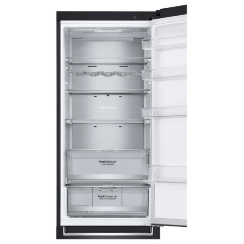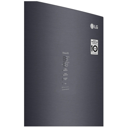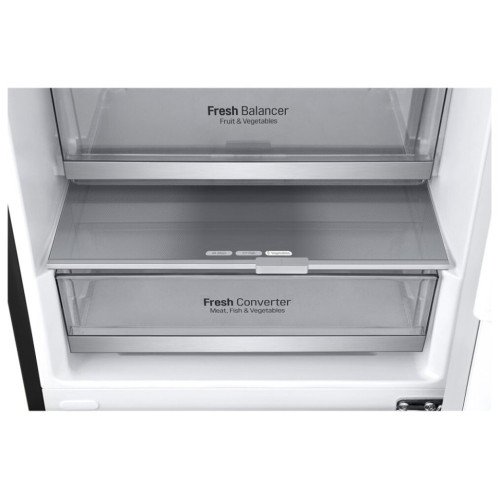 Панель холодного воздуха в верхней части холодильника обеспечивает на 32% более быстрое и равномерное охлаждение, чтобы ваши продукты сохранялись свежими еще дольше. При помощи простого регулятора FRESHBalancer поддерживает оптимальную влажность для ваших овощей и фруктов. Различные продукты требуют различных температурных режимов хранения. С помощью FRESHConverter можно выбрать один из трех температурных режимов (-2?: Мясо/ 0?: Рыба / 3?: Овощи). Система многопоточного охлаждения (Multi Air Flow) равномерно распределяет холодный воздух для того, чтобы продукты оставались свежими дольше даже на верхних полках холодильника. Уровень шума в новых холодильниках LG DoorCooling+ 36 дБ, что на 25% ниже, чем в предыдущих моделях. Тихая и надежная работа, чтобы ничего не нарушало вашего спокойствия дома. Полка для вина и складная полка в два сложения позволяют легко группировать продукты по типу для удобной организации продуктов внутри холодильника. Усовершенствованная складная полка теперь имеет два этапа сложения, что позволяет хранить крупные и габаритные продукты или блюда. Если вы истинный ценитель вина, то удобная винная полка – то, что вам нужно. Теперь она позволяет хранить до 5 бутылок. Со смартфоном и приложением LG ThinQ вы можете удаленно регулировать настройки температуры, чтобы всегда быть готовым к шумной вечеринке. Элегантный и практичный минимализм. Новый холодильник с нижней морозильной камерой – воплощение функциональности и стиля в элегантном корпусе. Минималистский дизайн максимизирует элегантность и удобство. Smart Inverter компрессор отличается экономичностью и меньшим уровнем шума по сравнению с моделями с обычным компрессором. Функция Smart Diagnosis от LG — это быстрый и легкий способ выявить и устранить неполадки. Просто позвоните на горячую линию поддержки клиентов LG и поместите телефон на холодильник. После этого холодильник установит соединение с компьютером, который выполнит диагностику в считанные секунды и предоставит мгновенное решение.