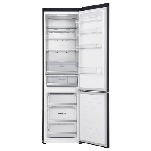 Название Холодильник LG DoorCooling+ GA-B 509PBAM. Категория Холодильники. Объем всего холодильника 384 л. Объем холодильной камеры 277 л. Объем морозильной камеры 107 л. Зона свежести (Fresh) есть. Система разморозки морозильной камеры No Frost. Система разморозки холодильной камеры No Frost. Подвесная дверь есть. Уровень шума до 36 дБ. Класс климатических условий N, SN, ST. Количество камер 2. Количество дверей 2. Количество компрессоров 1. Вещество-хладагент R600a (изобутан). Потребляемая энергия класс A++ (275 кВтч-год). Защита от детей есть. Производительность замораживания холодильника до 12 кг-cутки. Тип управления электронное. Материал полок холодильника стекло. Габаритный размер (ШxГxВ) 59.5x68.2x203 см. Вес 78 кг. Дополнительный функционал суперохлаждение, суперзаморозка, индикация температуры. Морозильная камера снизу. Цвет - Материал покрытия чёрный - пластик-металл. Управление со смартфона есть. Инверторный тип компрессора да. Складная полка есть. Количество полок в холодильном отделении 4. Количество ящиков в холодильном отделении 2. Количество ящиков-полок в морозильном отделении 3. Индикация открытой двери – звуковая. Уникальные технологии DoorCooling+. Дисплей есть. Генератор льда отсутствует. Цвет черный.