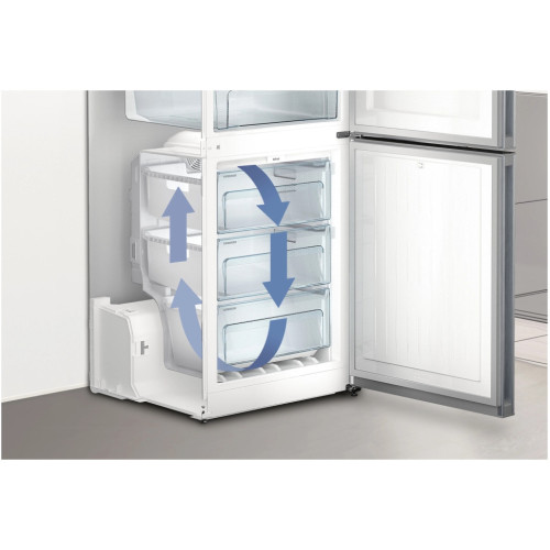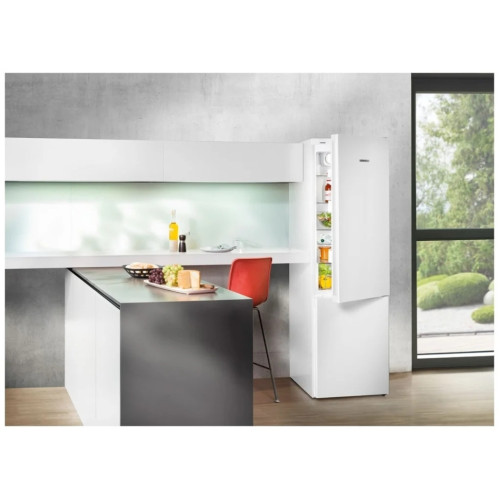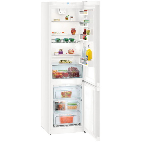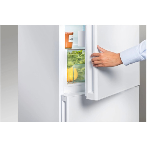 CN 4813 NoFrost Двухкамерный холодильник с системой NoFrost обеспечивает длительное хранение замороженных продуктов. Благодаря наличию двух независимых холодильных контуров система DuoCooling позволяет точно отрегулировать температуру в холодильной и морозильной камерах комбинированного холодильника-морозильника. Также благодаря этому отсутствует воздухообмен между холодильной и морозильной камерами. Это препятствует передаче запаха и «обветриванию» хранящихся продуктов питания. Электронная система управления оснащена цифровым дисплеем температуры, на который выводится также информация о настройках. Полка для бутылок с привлекательным дизайном приспособлена для практичного хранения напитков.