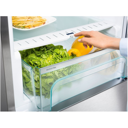 Холодильник Liebherr CNef 4735 Comfort NoFrost — это отдельно стоящая модель, выполненная в серебристом цвете. Состоит из 2 камер: холодильной и морозильной, общий полезный объем которых — 349 л. Система NoFrost обеспечит отличную заморозку в морозильной камере. Излишняя влага удаляется, поэтому на стенках не образуется наледь, а значит, система не требует размораживания. В холодильном отделении находятся пять полок, четыре из которых регулируются по высоте. Система VarioSpace позволяет размещать крупногабаритные продукты в морозильной камере.