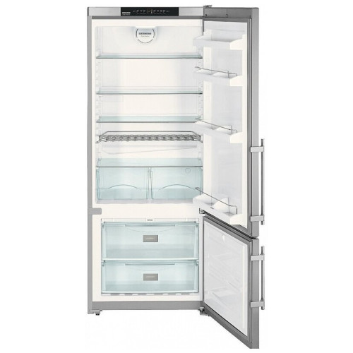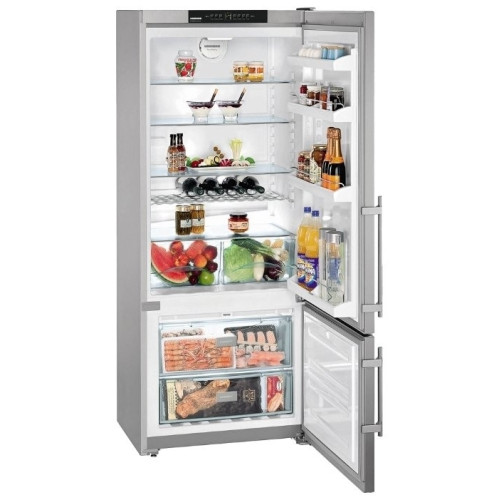 Холодильник Liebherr CNPesf 4613 Comfort NoFrost серебристого цвета в стильном дизайне SwingLine может быть установлен, как полностью отдельно, так и вплотную к стене или в готовую нишу. Благодаря наличию двух независимых холодильных контуров система DuoCooling позволяет точно регулировать температуру в холодильной и морозильной камерах. Отсутствие воздухообмена между холодильной и морозильной камерами препятствует передаче запаха и «обветриванию» хранящихся продуктов. Ключевые преимущества: Дисплей MagicEye со светодиодной индикацией температуры. Покрытие SmartSteel. Автоматическое размораживание