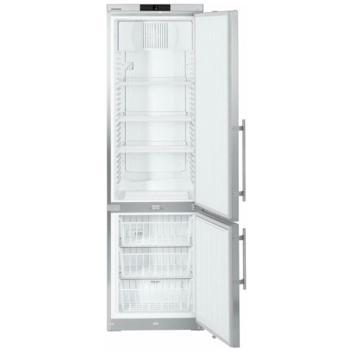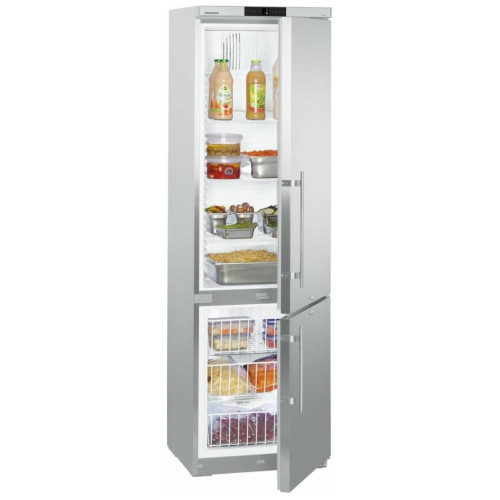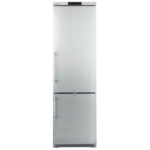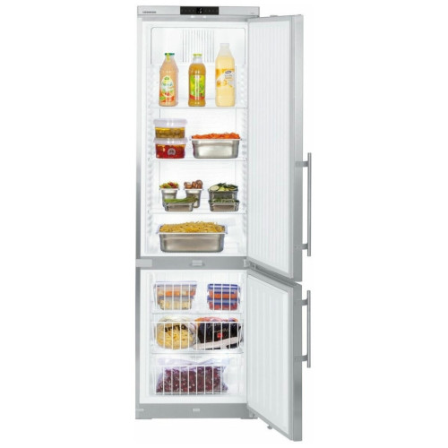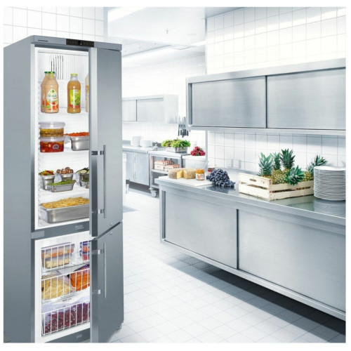 Профессиональный двухкамерный холодильник с нижним расположением морозильной камеры Особенности: Цифровой указатель температуры Цифровой индикатор отображает температуру в холодильнике с точностью до градуса; ее можно легко считать снаружи. Пользователь может видеть отображаемую температуру, не открывая при этом дверь прибора. Корпус из нержавеющей стали. Наружный корпус выполнен из цельного листа металла и не имеет зазоров; таким образом обеспечивается соблюдение гигиенических норм, а также требований по уходу за прибором. Корпус из нержавеющей стали обладает повышенной прочностью и идеально соответствует требованиям, которые предъявляются к профессиональному холодильному оборудованию. Циркуляционное охлаждение Мощные вентиляторы обеспечивают быстрое охлаждение свежих продуктов и поддержание равномерной температуры внутри всего объема холодильной камеры. Эффективная система замораживания Благодаря многолетнему опыту в сфере холодильной техники, а также непрерывному проведению исследовательских работ, компания Liebherr смогла обеспечить высочайшее качество системы охлаждения, устанавливаемой в своих приборах. Использование высококачественных компрессоров, конденсаторов, испарителей, а также других компонентов системы охлаждения обеспечило существенное снижение потребления энергии, а также уменьшение эксплуатационных расходов приборов Liebherr. Предупредительный сигнал при повышении температуры Встроенный предупредительный сигнал при повышении температуры активируется в случае превышения или невыхода на заранее установленные параметры. Система предупреждения может быть выполнена, как для подачи акустических, так и оптических предупредительных сигналов. Таким образом обеспечивается максимальная безопасность заложенных на хранение продуктов. Экологически безопасный хладагент В приборах используются экологически безопасные хладагенты R 600a и R 290: их применение не создает парникового эффекта и они не способствуют разрушению озонового слоя атмосферы. Указанные марки хладагентов почти полностью заменили ранее применявшиеся хладагенты R134a и R404a. Во всех импульсных и морозильных ларях от Liebherr используется хладагент R 600a или R 290, что обеспечивает прекрасную энергоэффективность приборов, улучшает их баланс по CO2 и способствует устойчивым продажам. Перенавешиваемая дверь В стандартном исполнении на приборы устанавливается дверь, которая открывается слева направо. При этом дверь можно перевесить на другую сторону и тем самым изменить сторону ее открывания для большего удобства. Общие данные: Размеры: высота (см): 200,3 ширина (см): 59,7 глубина (см): 66,5 Общий объем/ Полезный объем: Холодильника (л): 361/345 Холодильной камеры (л): 254/240 Морозильной камеры (л): 107/105 Количество компрессоров: 1 Годовое потребление энергии: 528 кВтч (1,447 кВт-ч/24 ч