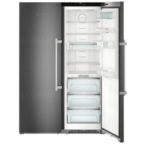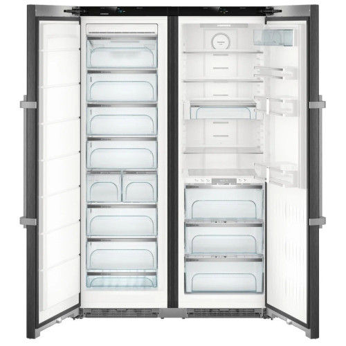 Liebherr SBSbs 8683 — холодильник Side-by-side оснащен зоной свежести BioFresh, где поддерживается идеальная температура для более длительного хранения овощей, фруктов, мяса и рыбы. В морозильной камере имеется ледогенератор IceMaker, способный производить до 0.8 кг льда в сутки. Модель высотой 185 см и шириной 121 см в оригинальном цвета «черная сталь» изготовлена из нержавеющей и легированной стали с покрытием от отпечатков пальцев. Автоматическое размораживание в холодильной камере и система No Frost в морозильнике позволяют избежать образования наледи на стенках. Для шоковой заморозки свежих продуктов служит функция SuperFrost с автоматическим отключением. Система DuoCooling с двумя контурами охлаждения поможет точно выставить температуру и избежать смешивания запахов. Складная полка в холодильном отделении позволит разместить высокую посуду