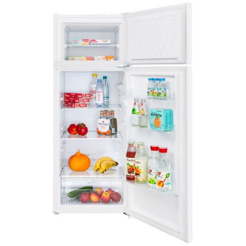 Современный двухкамерный холодильник с верхней морозильной камерой объемом 41 л. Система охлаждения — DeFrost.