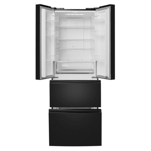 MFF180NFBE01отличается непревзойдённым удобством использования: идеальные условия для хранения продуктов, превосходная система освещения и лёгкий уход – всё это удовлетворит даже самые взыскательные требования. Зона свежестисоздаёт все условия, чтобы содержимое холодильника как можно дольше оставалось свежим. В зоне для хранения мяса и рыбы с регулируемой температурой от -1 °C до +5 °C продукты остаются свежими в 3 раза дольше, а фрукты, овощи и зелень – даже в 5 раз дольше благодаря контролю уровня влажности. Холодильники с «французской дверцей» отличаются большой вместительностью и оригинальным дизайном. Выдвижные ящики морозильника превосходно удерживают холод, меньше подвержены поломкам и позволяют лучше разглядеть содержимое, чем распашные дверцы. Светодиодная подсветка даёт равномерный, яркий свет и обеспечивает отличный обзор пространства холодильника. Светодиоды потребляют меньше энергии, чем лампы накаливания, и служат намного дольше. С интеллектуальной технологией Total No Frost вы навсегда забудете о необходимости вручную размораживать холодильник и морозильную камеру. Благодаря равномерному распределению холодного воздуха в камере и на продуктах не образуется лёд. Полки из закалённого ударопрочного стеклапозволяют хранить крупные и габаритные продукты и тяжёлую посуду. Полки оснащены стильными металлическими фреймами. И это не только декоративный элемент, придающий холодильнику современный вид: фреймы защищают от трещин и сколов, а также препятствуют стеканию жидкостей в случае их пролития. Регулируемые по высоте полки позволяют легко группировать продукты по типу. Организация продуктов внутри холодильника стала ещё удобнее. Внутреннее антибактериальное покрытие предотвращает образование плесени и размножение микробов. Это гарантия свежести во всех отношениях. Современный хладагент R600A «Зелёные» технологии абсолютно безвреден для окружающей среды. Такой хладагент не причиняет вреда озоновому слою. Контроль над функциями холодильника обеспечивает понятная и простая сенсорная панель управления. Температурный режим настраивается индивидуально для каждой из камер. Оборудование оснащено LCD-дисплеем, с которым удобно отслеживать состояние прибора и менять настройки. С помощью сенсорной панели можно активировать различные функции (например, режим «Отпуск»), настроить температуру в одном или нескольких отделениях, посмотреть информацию о текущем температурном режиме в холодильной и морозильной камере. Выдвижной ящик с зоной свежести стал ещё вместительнее. Морозильная камера с увеличенным объёмом на каждом уровне обеспечит простое и удобное хранение ваших продуктов. Режим быстрой заморозкиспособствует сохранению свежести и витаминов в продуктах, хранящихся в морозильной камере. При отключении питания вся информация о выставленных вами настройках сохранится. Режим «Отпуск»помогает перевести работу устройства в экономичный режим. Вы можете существенно снизить расход электроэнергии, когда нет необходимости в использовании холодильника. Уровень шума всего 42 дБ – современный компрессор не только экономит электроэнергию, но и тихо работает. Чтобы ничего не нарушало вашего спокойствия. Если вы забыли закрыть дверцу, сработает звуковой сигнал, который можно отключить, плотно захлопнув дверцу.