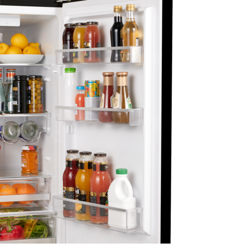 Maunfeld MFF186NFRB Система разморозки NoFrost Тип компрессора Стандартный Общий объём, л 252 Полезный объём, л 250 Общий объём холодильной камеры, л 181 Общий объём морозильной камеры, л 71 Высота, мм 1865 Глубина, мм 600 Ширина, мм 540 Уровень шума, дБ 45 Тип управления Электронное Класс энергетической эффективности A+ Энергопотребление, кВтч/год 255 Тип освещения LED Количество ящиков холодильной камеры 2 Количество полок холодильной камеры 4 Количество боковых полок 3 Цвет Черный Материал фасада Пластик Материал корпуса Металл Установка вплотную к стене Да Расположение морозильной камеры Снизу Мощность замораживания кг/в сутки 3,5 Климатический класс ST Хладагент R 600 Вес товара без упаковки (нетто), кг 59 Вес товара (брутто), кг 64,2